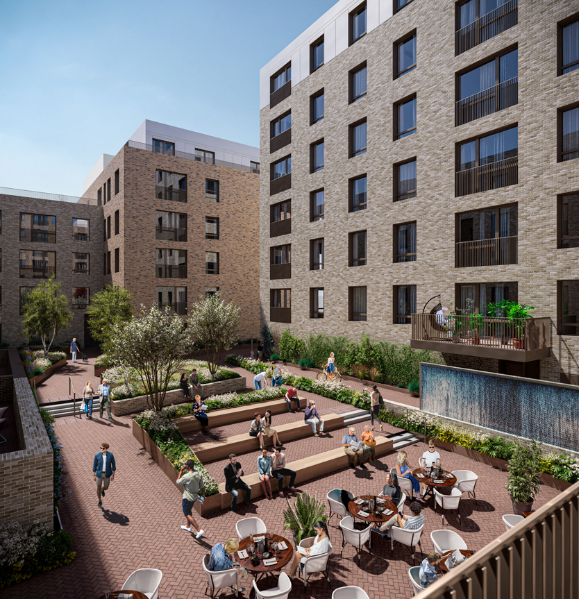 - New public space with a public right of way taking the route through a new central courtyard, providing a space for residents and the wider community to come together.