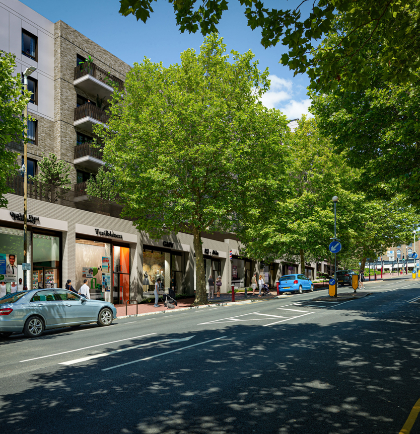 From stuccoed Regency facades replete with plinths, cornicing, colonnades, and verandas to grand red brick Victorian villas, neo-Gothic follies, and the Art Deco influences of the Civic Centre, the influences on our proposals are manifold. Our design proposals are intended to reflect some of these surrounding typologies in a series of facades that break up the proposals into a series of buildings which bear a relationship to their immediate context, either through materiality and colour or through form and expression, without being a pastiche of what has come before.